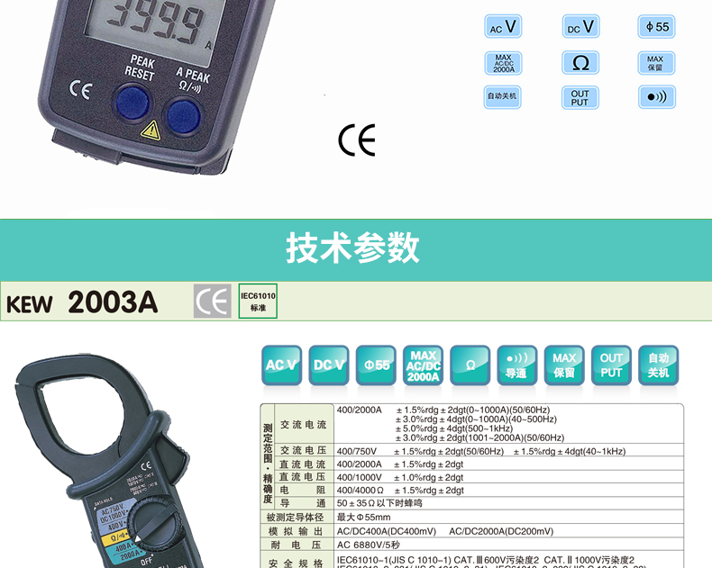 克列茨2003 a數(shù)字鉗形電流表技術參數(shù)